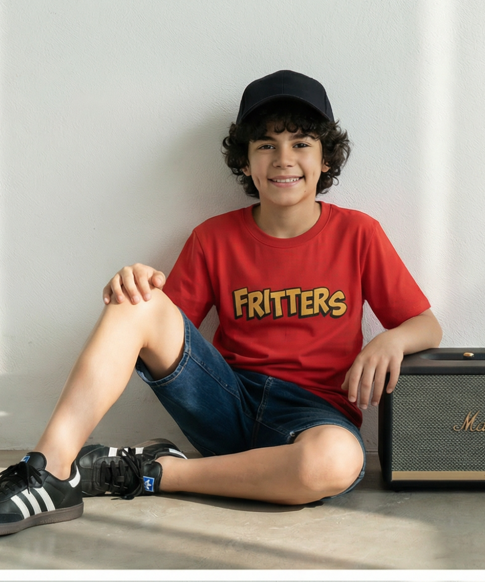 From backyard challenges to schoolyard games, the Fritters Tee keeps the fun going—and the style flowing. Let kids play loud, move free, and look awesome. 💥🌿👟