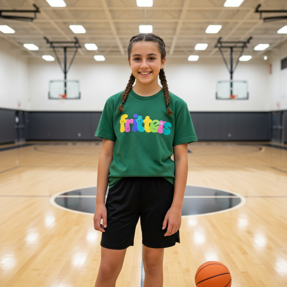 From backyard challenges to schoolyard games, the Fritters Tee keeps the fun going—and the style flowing. Let kids play loud, move free, and look awesome. 💥🌿👟